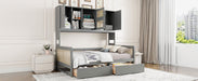 Twin Size Wooden Daybed With Twin Size Trundle, And All In One Cabinet And Shelf - Gray