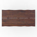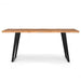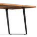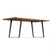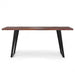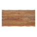 - Made with sustainably sourced solid acacia wood, the thick tabletop is comprised of 2 panels connected by butterfly joints and has live edges on the longer exterior sides that give this dining room table a rustic, natural look.