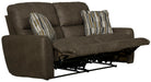 Dorian offers space-saving scale with all the comfort you have come to expect from Catnapper. A wide 2-over-2 seat provides ample seating while thin padded arms keep the overall width suited for condo or apartment living. A faux leather fabric with decorative accent pillows complete the look.