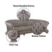 - Features: Crescent Shape, Floral Scrolled Crown & Front-Arm Trim w/Gold Patina Finish & Antique Brush, Nailhead Trim (Armrest & Base)