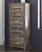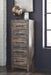 When merged in just the right way, rustic and industrial styles can make one happy marriage. Case in point: this narrow bedroom chest. A refined take on barn board beauty, its complex, replicated wood grain showcases hints of burnt orange and teal tones for a sense of weatherworn authenticity. Elongated drawer pulls elevate the aesthetic.