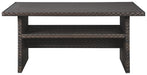 Alfresco living is easy to love with this multi-use table. Its raised height makes it perfect for mealtime, game time, a round of cards or a round of drinks. Resin wicker over a rust-free aluminum frame lends an upscale aesthetic that’s downright durable. Aluminum top is conveniently water and stain resistant.