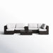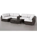 • Complete Outdoor Seating Group: Includes sectional chairs, corner pieces, center console with cup holders, and a glass-top coffee table