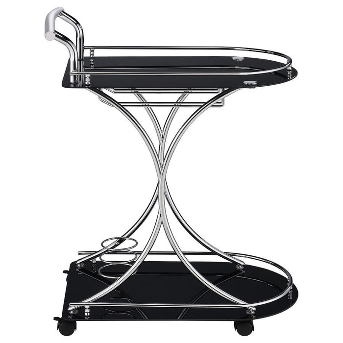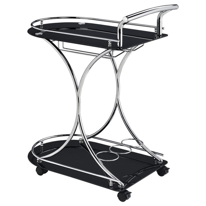 Elfman - 2-Tier Glass Shelf Metal Bar Cart - Black And Chrome