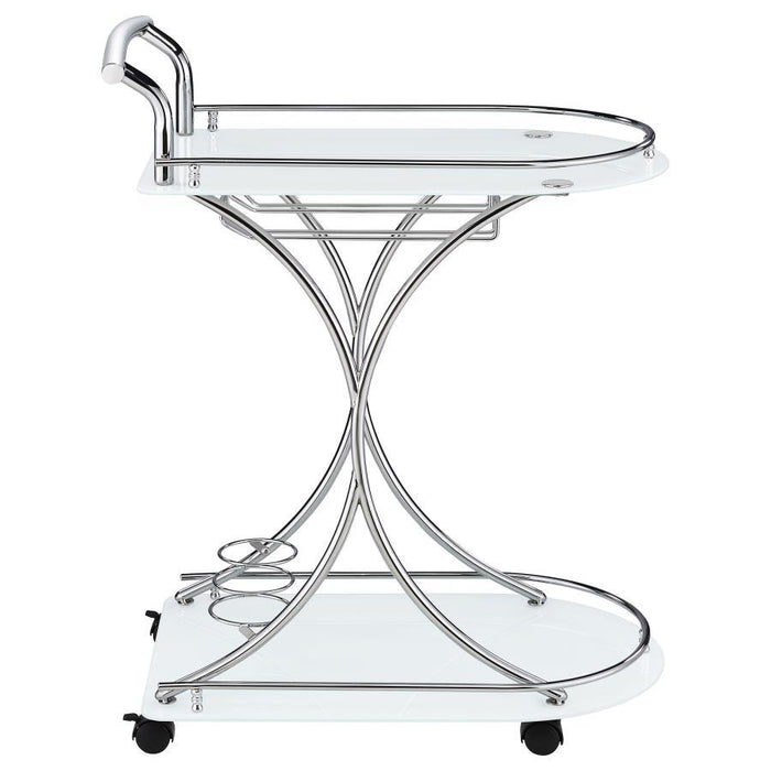 Elfman - 2-Tier Glass Shelf Metal Bar Cart - White And Chrome