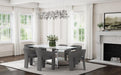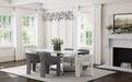 Make a statement in your glam dining room with a contemporary mirrored dining table. Its angular structure and rectangular tabletop are a dynamic collaboration, delivering dimension and depth in a refined space. Black trim complements V-shaped pedestals, lending a hint of definition. The mirrored surfaces of the table are supported with metal structure underneath, offering reliable stability and support. The mirrored design creates incredible artistry while ensuring an airy ambiance in your modern space.