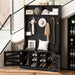 Entryway Bench With Coat Rack, 3 In 1 Design And Adjustable Shelves, Hall Tree With 7 Hooks For Entrance, Living Room - Black