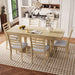 - Extendable Dining Set: Includes a rectangular dining table and f upholstered chairs with trapezoidal backrests, blending modern design with farmhouse charm - perfect for family meals or stylish entertaining.