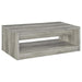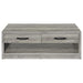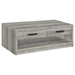 Create a cohesive look in your living space with this rustic coffee table set. Featuring a weathered gray wood-look finish, the set is crafted with engineered wood and scratch-resistant veneer for durability. Each piece includes clean lines, spacious storage drawers with bold metal handles, and open shelves for additional display or storage. This set blends rustic charm and functionality, making it ideal for casual and modern interiors alike.