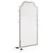 Chic couture style is a featured element of a lighted LED floor mirror well suited to fashionable living spaces. The Evangeline floor mirror offers a shapely silhouette with an arch top and rectangular profile. Its pine wood frame offers a silver oak finish, delightful and decadent. Side hangers add convenience, and LED lighting on its mirrored section is both mood-inducing and functional. A floor switch operates this glam-inspired mirror.