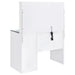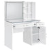 Transform your daily routine with this modern vanity desk, expertly merging sleek aesthetics and smart organization. Its high gloss finish, paired with clear acrylic handles, imparts a bright, contemporary look. Two smooth-gliding drawers and a cabinet with a framed fluted panel and adjustable shelf provide ample storage for cosmetics and styling tools. A tempered glass top keeps the surface pristine, while the integrated LED mirror, activated by a touch switch, ensures flawless lighting for every occasion.