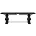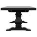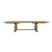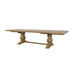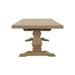 This rectangular extension dining table blends classic European elegance with artisan craftsmanship. Crafted from solid pine, it features a double pedestal trestle base that exudes romantic charm and timeless character. The sculpted pedestals, connected by a wide plank accent, create a striking focal point with an authentic handcrafted feel. A planked tabletop enhances its rustic appeal, while two 16-inch removable leaves extend the table up to 126 inches, making it perfect for gatherings large and small. Built for both beauty and durability, this table is an inviting centerpiece for any dining space.