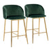 Fran - Pleated Contemporary / Glam Fixed Height Counter Stool (Set of 2) - Gold / Green