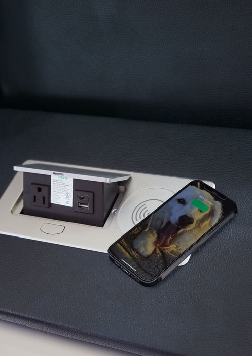 This power reclining sofa goes beyond basic comfort. It upgrades the everyday, turning your living room into an entertainment hub. Don’t want to leave your seat? Keep essentials in reach with assorted charging options, cup holders and storage arms. You can create an even cooler vibe for family movie nights and friendly gaming matches with LED lights. And your sleek style isn’t compromised—its diamond stitching and streamlined arms recall the aesthetics of luxury automobiles.