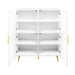 - Ample Storage: Equipped with four doors and four adjustable shelves, this cabinet offers generous storage space, ideal for organizing belongings in a sleek and modern fashion.