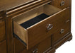 This eleven-drawer dresser delivers elegant functionality with a warm and updated traditional form. Nine full-size drawers provide everyday storage, while two hidden jewelry drawers and cedar-lined bottom drawers offer added protection for delicate items and seasonal wear. Finished in brown cherry with antique nickel pulls, the dresser blends classic detailing with thoughtful upgrades and durable craftsmanship.