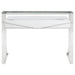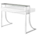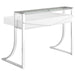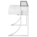Add an edge of contemporary flair to any living space. This sleek, stylish writing desk exudes glamorous appeal. Its eye-catching frame is expertly crafted with a gracefully curved silhouette. Its gorgeous, glossy white surface blends appealingly with its shining chrome legs. Complete with two felt-lined drawers with full extension glides, this desk enhances any home office with convenience and modern style.