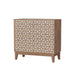 - Unique Geometric Double Door Cabinet: Distressed design with retro-minimalist appeal, enhancing any room with rustic warmth and visual interest.