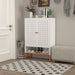 Grid Double Door Shoe Cabinet With Adjustable Compartments And Moisture-Proof Design In White Metal