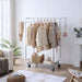 Heavy Duty Double Clothing Garment Rack With Shelves - Silver