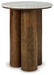 Simply elegant. This accent table combines the beauty of wood and stone, appealing to the luxurious but inviting vibe of your contemporary aesthetic. A beige marble top pairs with cylindrical legs in a brown finish, giving this refined piece an aura of welcoming warmth. It’s a homey take on highbrow design, balancing approachable character with your taste for elevated styling.