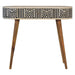 - Edessa Bone Inlay Table - This beautiful boho inspired table has been constructed from 100% solid mango wood and has a fine finish. Other features include a 2 bone inlay drawer, and Nordic style legs. The bone inlay is sourced responsibly from deceased animals such as camels, goats, and buffaloes.