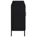 Enhance your dining or living space with this sleek black sideboard, elegantly shaped with subtle arches and showcasing framed fluted tempered glass doors. Inside, adjustable shelves provide flexible storage for dinnerware and décor, while its minimalist profile rests on slender metal legs for a refined touch. Constructed from engineered wood and laminate veneer, this versatile piece blends durability, easy maintenance, and understated style, seamlessly complementing modern interiors.