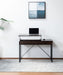 - Easily transform to a standing working table with the Juno lift top desk. The split top surface allows one section to lift for standing and the other section to remain stationary. Featuring a hidden storage underneath the lift top section and a drawer on the right to keep your workspace organized. The black metal frame complements the rich, dark brown finish to complete the contemporary style and beautifully blend into your home.