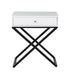 Koda - Wooden End Side Table Nightstand With Glass Top, Drawer And Metal Cross Base - White