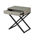 Koda - Wooden End Side Table Nightstand With Glass Top, Drawer And Metal Cross Base