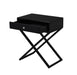 Koda - Wooden End Side Table Nightstand With Glass Top, Drawer And Metal Cross Base - Black
