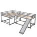 Full And Twin Size L-Shaped Bunk Bed With Slide And Short Ladder - Gray