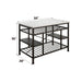 The Lanzo Kitchen Island is equally ideal for counter space or an excellent choice for display with extra storage. Blending contemporary style with industrial charm, the design is both stylish and functional. The metal frame adds a touch of industrial impression to the modern marble top style. Featuring four open shelves this is a must-have for every home.