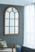 Large Arched Accent Mirror With Frame With Decorative Window Look Classic Architecture Style Solid Fir Wood Interior Decor - Brown