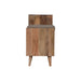 - Bench Solid Wood Larissa 2 slot Oak-ish Unit Artisan Furniture - Introducing the Larissa Bench Unit, a perfect blend of practicality and modern design. Handcrafted from 100% solid mango wood with a warm oak-ish finish, this versatile piece features a cushioned seat for added comfort, two open slots for organizing shoes or essentials, and a cabinet with a woven cane door for concealed storage. Accentuated with Nordic-styled legs and elegant brass handles, it exudes mid-century elegance while ensuring functionality in entryways, living spaces, or bedrooms. The Larissa Bench Unit is a stylish and durable storage solution that seamlessly combines organization and aesthetics for your home.
