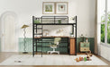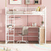 This stylish metal loft bed with a desk is made from sturdy metal and features a clean-cut silhouette that can be matched with any room décor. Designed with safety in mind, this loft bed comes with a ladder that is interchangeable for both left and right sides and is easy to climb up and down. The 3 layers of shelves underneath the desk provide ample space to create extra room when needed, ideal for storing books, toys, or any small items. Some assembly is required, but the bed is easy to assemble.