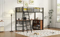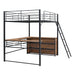 Full Size Loft Bed With 3 Layers Of Shelves And L-Shaped Desk - Black