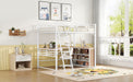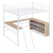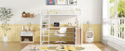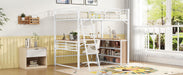 Full Size Loft Bed With 3 Layers Of Shelves And L-Shaped Desk - White