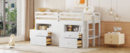Twin Size Loft Bed With 4 Drawers, Underneath Cabinet And Shelves - White