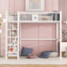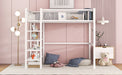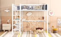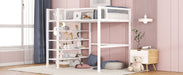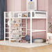 Full Size Loft Bed With 4 Tier Shelves And Storage - White