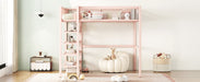 Twin Size Loft Bed With 4 Tier Shelves And Storage - Pink