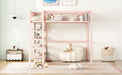 Full Size Loft Bed With 4 Tier Shelves And Storage - Pink