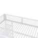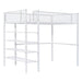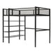 Modern Style: Crafted from metal with a clean painted finish, this bed features a sleek silhouette with a horizontal slatted headboard and footboard, matched with a guardrail. It blends seamlessly with any room decor. The raised base creates a cozy loft space for storage or play.