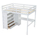 Full Size Loft Bed & Built In Wardrobe, Desk, Shelves, And Drawers - White