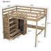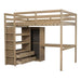 Full Size Loft Bed With Built In Wardrobe, Desk, Shelves, And Drawers - Walnut