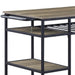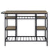 - Design & Structure: The Lona Rustic Oak & Black Finish Kitchen Island features a rectangular design with a metal frame coated in powder, complemented by a wooden top covered with melamine paper. It includes six open compartments providing ample storage space.