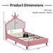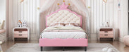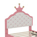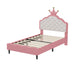 Twin Size Lovely Crown Fantasy Leather Princess Bed With Tufted Headboard - Pink / Cream