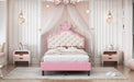 Full Size Lovely Crown Fantasy Leather Princess Bed With Tufted Headboard - Pink / Cream