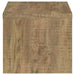 This coffee table set blends rustic charm and modern simplicity for a versatile addition to any living space. Each piece is crafted with a melamine paper finish that highlights the roughhewn texture of mango wood. Sturdy construction includes solid side supports, creating a clean, geometric look. Warm tones enhance the farmhouse aesthetic, while spacious tops offer ample room for decor, drinks, and essentials. This set effortlessly ties together your living room's welcoming ambiance.