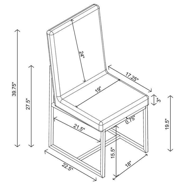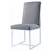 Elevate your dining space with this sleek and modern dining side chair, designed to blend style and comfort effortlessly. The chair features soft upholstery with a padded seat and backrest, providing a cozy seating experience for meals or gatherings. Its open metal frame, finished in polished chrome, creates a minimalist silhouette that adds a touch of contemporary elegance to any room. Perfect for both casual and formal dining settings, this chair complements a variety of decor styles, from modern to minimalist. Enhance your dining area with a chair that brings both visual appeal and functional design.